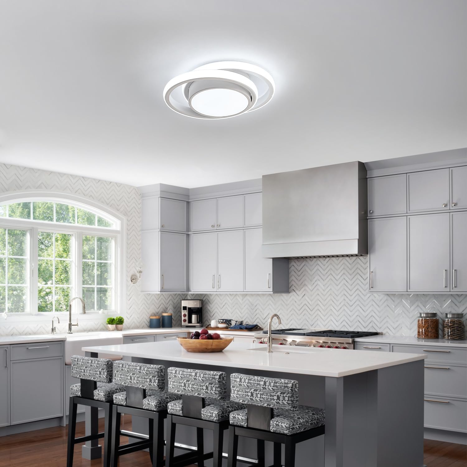 Deze moderne LED plafondlamp met dubbel ringdesign combineert elegant design met krachtige verlichting. Ook uitgeschakeld is hij decoratief; ingeschakeld verandert hij de ruimte direct.